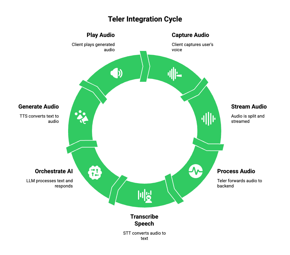 Teler handles real-time voice streaming and session control, so teams can focus on AI logic instead of telephony complexity.