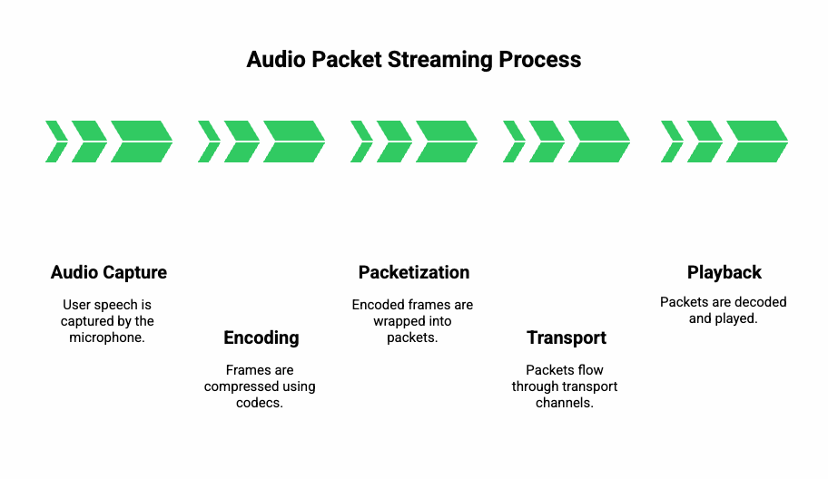 When we talk about streaming in a phone conversation, we are not referring to how platforms stream movies or how websites play stored audio. Telephony requires real-time call audio streaming, where audio travels as small encoded packets with strict timing rules.