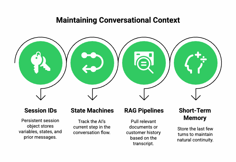 - Short-Term Memory Buffers: Store the last few turns to help maintain natural continuity.