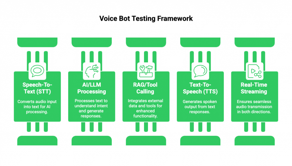 Unlike chatbots, voice bots operate in real time. Audio flows continuously. Users interrupt, hesitate, or change direction mid-sentence. Meanwhile, the system must listen, think, and respond without noticeable delay. Because of this, traditional QA methods are not enough.