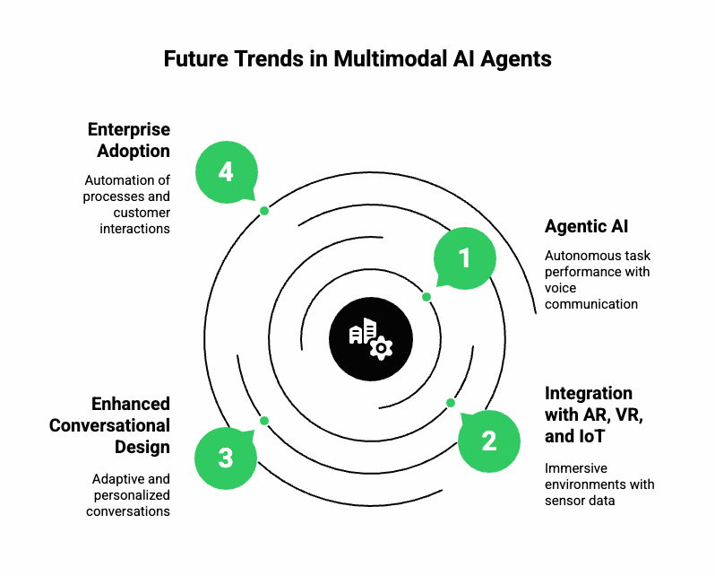 The rise of multimodal AI agents is only the beginning. The next generation of AI agents will leverage real-time, cross-modal interactions to perform increasingly complex tasks. Key trends include: