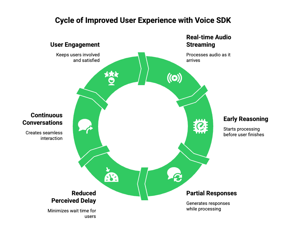 From a technical perspective, this improvement comes from real-time audio streaming rather than request-response APIs. Instead of waiting for the user to finish speaking, the system processes audio as it arrives.