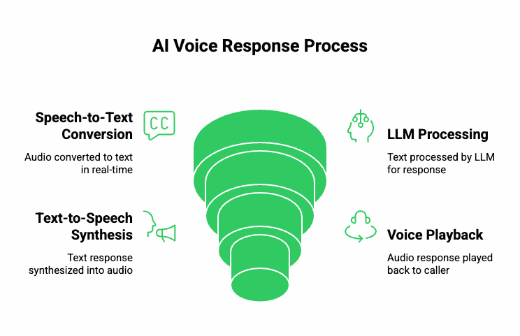 - The caller hears the response as natural, human-like voice with minimal delay.
