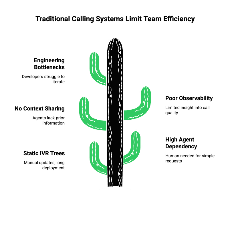 Despite business growth, many teams still rely on legacy telephony setups. These systems were not designed for automation or scale.