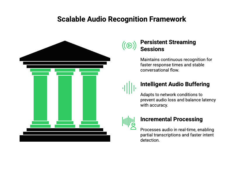 It enables persistent streaming sessions, incremental processing, and adaptive buffering to reduce delays in real-time conversations.