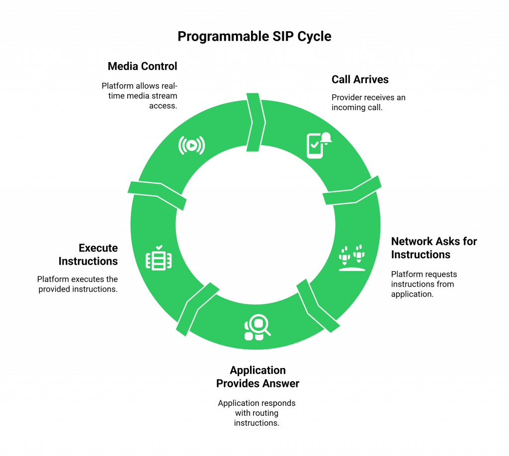 Programmable SIP is a fundamentally different architectural approach. It is not about configuring a static path; it is about giving your application the power to control the path, step by step, in real time. It is a model where the voice network actively asks your application for instructions at every stage of the call.